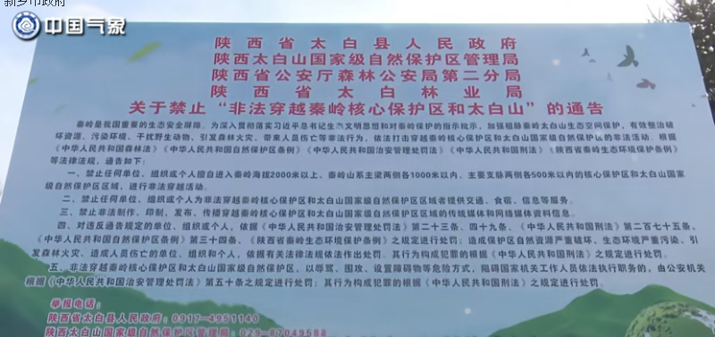 同时,因高海拔,致使“鳌太线”山顶与山下的温差很大,“鳌太线”还有小范围的常冬区,在太白山高山气象站曾观测到零下32℃的最低气温。在“鳌太线”上,有些地区极端低温可能会超过陕北地区的极端低温,易导致人体失温,非常危险。