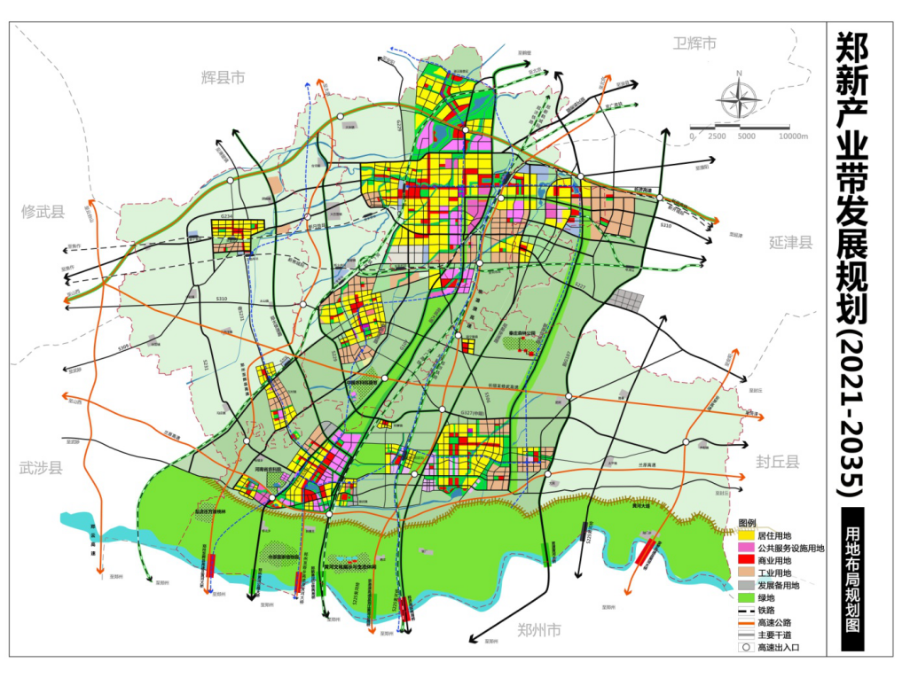 新乡使命——郑新一体,绿色崛起。贯彻落实新发展理念,新乡提出要构建以“现代创新体系、现代产业体系、现代城镇体系、生态文明体系、基础能力支撑体系、公共服务体系”六大体系为支撑的现代化经济体系,以“两中心三带六区多点”战略格局推进郑新一体化发展。郑新产业带作为郑新一体化发展的重要支撑,在新乡“新能源、新资源、新基建、新优势”的助推下,将加速整合要素,率先实现绿色崛起。