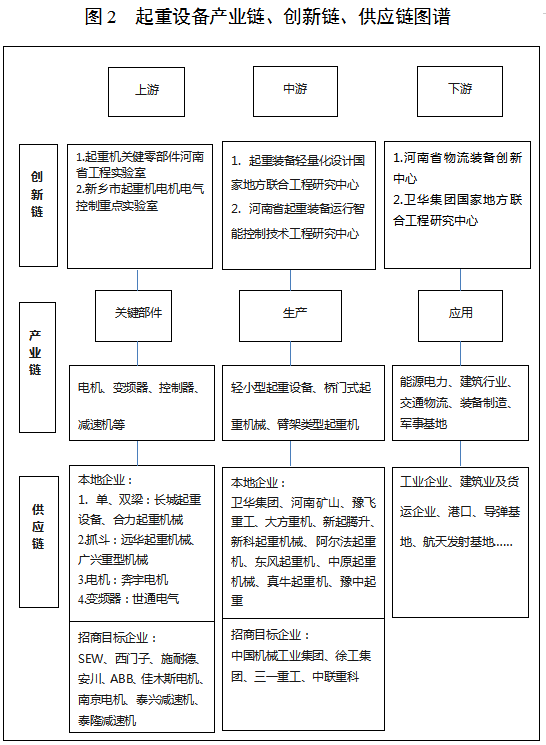 战略路径:以加快新一代信息技术与制造业深度融合为主线,以智能制造为主攻方向,以龙头企业为引领,以项目建设为支撑,积极推进高端装备产业培育和传统装备产业升级“双轮驱动”。做强起重机械、振动机械、汽车及零部件等优势产业,做大过滤设备、农业机械、环保装备等特色产业,加快培育数控机床、工业机器人、航空航天、智能成套装备等高端装备产业。以新技术、新产品、新业态、新模式为突破口,培育新的增长点,推动产业做大做强。