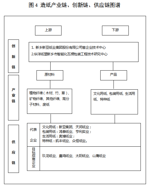 产业布局:纺织服装产业按照“一园区、两集群”的思路,加快建设经开区绿色纤维专业园区和辉县吴村、延津王楼等两个棉纱产业集群区,鼓励高新区等其他地区根据产业基础和资源条件,积极发展特色纺织服装产业;现代家居产业大力推进高新区新飞智家科技产业园白色家电基地、原阳家具产业园基地建设,依托牧野区海宝电器、大班家具,获嘉县家具产业园两个支点,形成优势互补、错位发展、各具特色和富有市场竞争力的现代家居产业集群;造纸及纸制品产业重点推动新乡县、辉县市等两大造纸产业集群区转型升级,提升中高档产品比重,打造国内知名的纸制品加工和纸包装基地。