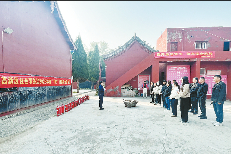 为切实强化文物保护单位消防安全管理,提升文物保护人员应急处置能力,近日,高新区社会事务局在该区关堤镇张八寨村崇庆寺开展2025年文保系统消防演练活动(如图)。高新区社会事务局文教科协调高新区消防大队工作人员参与演练,高新区关堤镇、振中街道综合文化服务中心工作人员及各文保点位文保员共同参与此次演练。