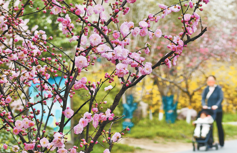 3月22日,春风送暖,我市街头繁花盛开,市民漫步其间,感受春日暖意,尽显城市生活的温馨与闲适。
