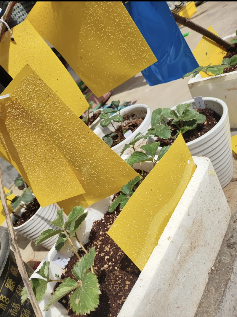 白粉虱天生 “迷恋” 黄色!可用涂了机油的黄板挂在植物顶端,(温室效果更佳),虫子一扑上来就会被粘住,简单又环保。